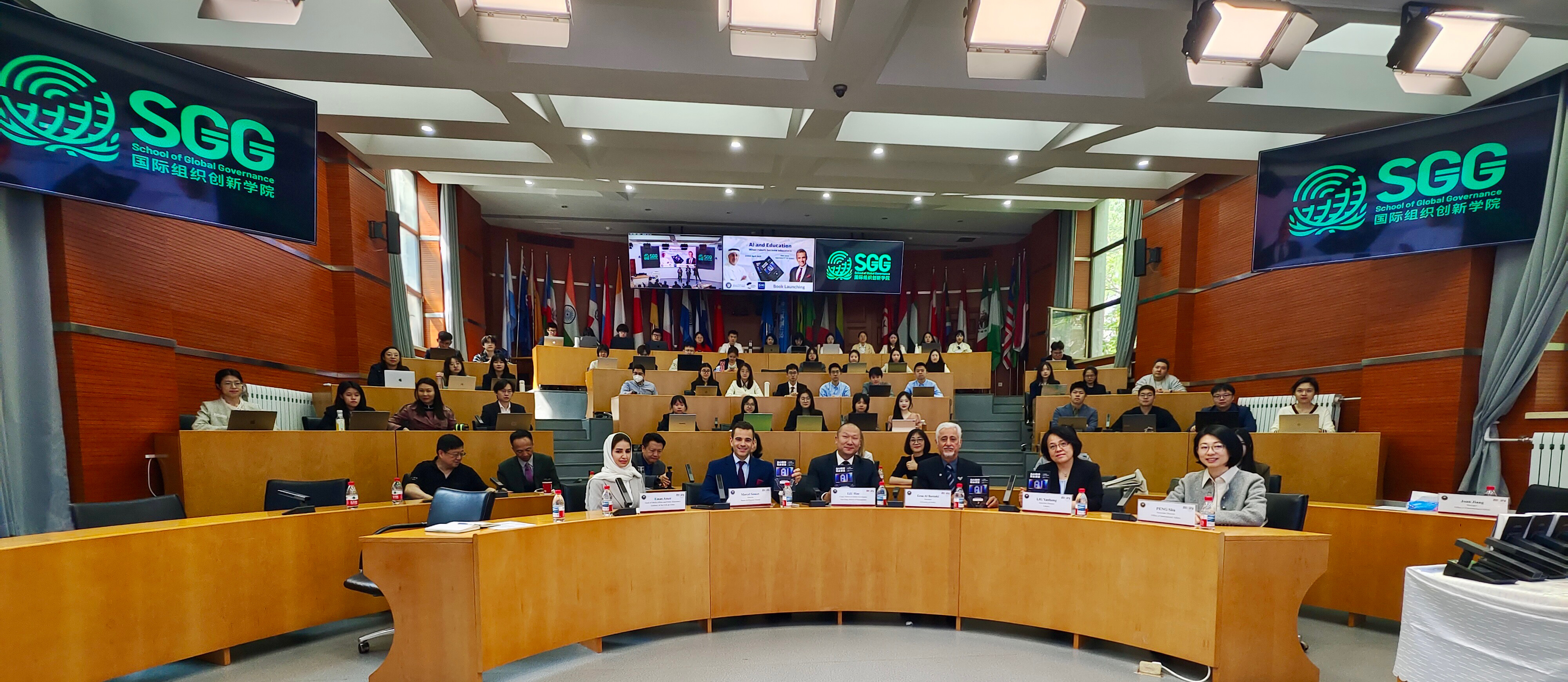 人工智能和教育全球治理对话暨新书发布会在国际组织创新学院举办2025年4月19日上午,学校外事处、图书馆和国际组织创新学院、管理学院同迪拜大学联合举办人工智能和教育全球治理对话(SGG Talk)。
